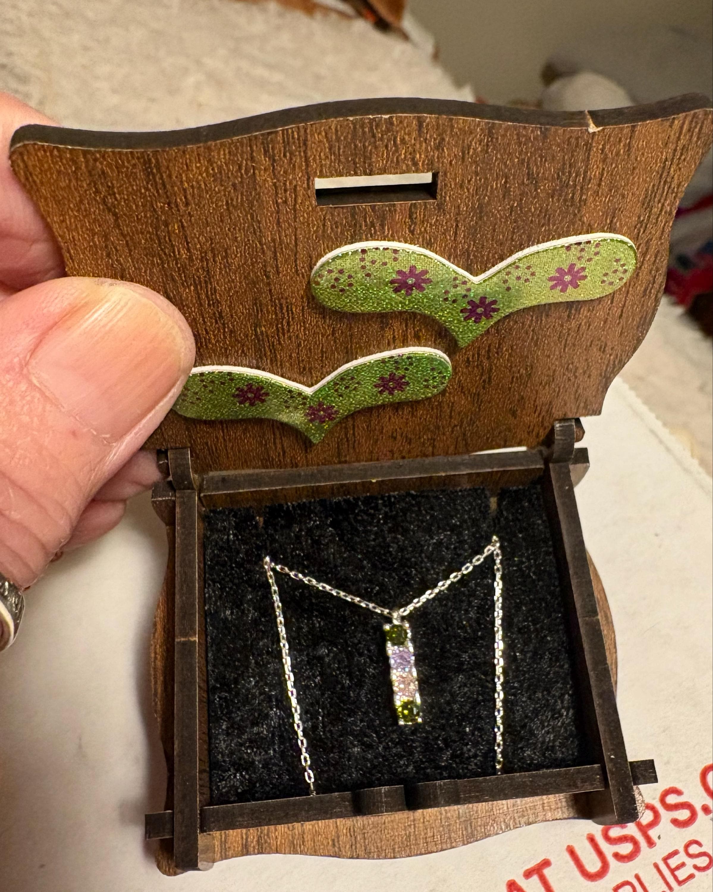 The family necklace that I ordered for my daughter in law is absolutely gorgeous, it came in a cute little wooden jewelry box which was a nice surprise. The shipping took longer than expected though